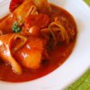 Megszórjuk tápióka liszttel, pirospaprikával és közben fokozatosan felöntjük húsleves alaplével, (vagy vízzel és húsleveskockával), addig csak, hogy épp hogy ellepje, és készre főzzük. Fedő alatt, enyhe közepes lángon hagyjuk főni kb. 40-50 percet.