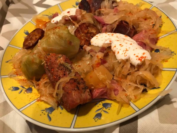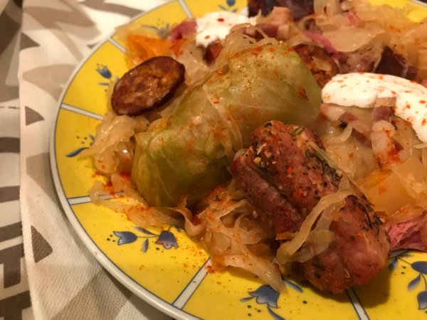 * Tipp: A családban valaki savanyúban szereti, valaki nem, így én a fele savanyú káposztát jól kiáztatom, és utána a másik felével a savanyúval összekeverem. Így mindenki boldog. 🙂