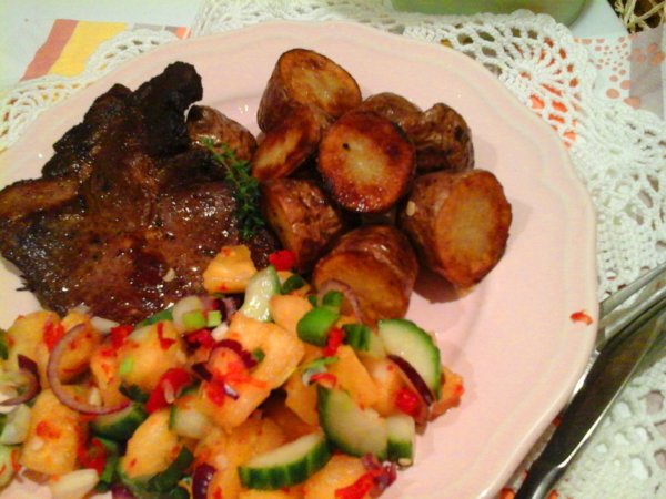 Ha köretet szeretnénk hozzá, én a sült krumplit választottam, de el is hagyható, csak ananász salsával is könnyed ebéd vagy vacsora a kakukkfüves sült tarja. Ha még is szeretnénk köretet, én így készítettem: kisebb burgonyákat tegyük fel sós vízbe főzni, de ne főzzük készre, hanem csak háromnegyed készre. Majd hideg vízzel hűtsük le, majd szárítsuk le, és vágjuk félbe. Kókuszzsírba süssük ropogósra, arany barnára, szedjük ki egy nagy tálba vagy tepsibe, és még forrón szórjuk meg sült krumpli fűszerkeverékkel.