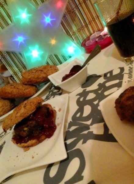 Zsályás pulyka burger/vajas rozsos pogácsával és málnás ketchuppal