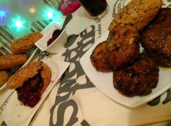 Ha elkészültünk állítsuk össze a vacsoránkat, vagy akár ebédünket. Vágjuk félbe a megsült pogácsákat, kenjük meg a pogácsa alját málnás ketchuppal és tegyük bele a húspogácsákat, majd megint öntözzük meg málnás finomsággal.