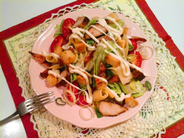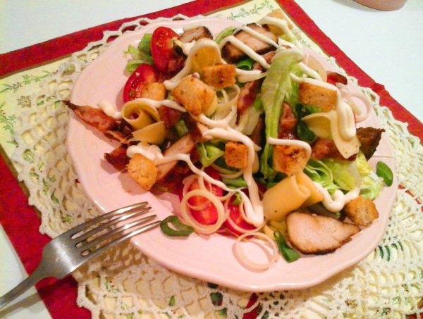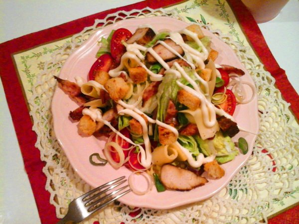 Az én salátám sem lett teljesen autentikus, saját ízlésünknek megfelelően változtattam rajta, egy kicsit felturbóztam, csirkemellel és egyéb zöldségekkel, és a pikáns öntetemmel… 🙂 Isteni finom, érdemes ezt is kipróbálni, ha egy finom salátára vágyunk, hiszen gyors, egyszerű és 30 perc alatt készen van… 🙂