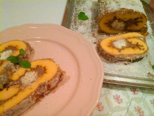 Kitekerjük a kihűlt piskótatekercset, megkenjük a nutellás tejszínes krém kb 2/3-val, majd rákenjük a kókuszos mascarpone tejszínes krémet, majd egy rudat formálva belőle, ismét összetekerjük.
