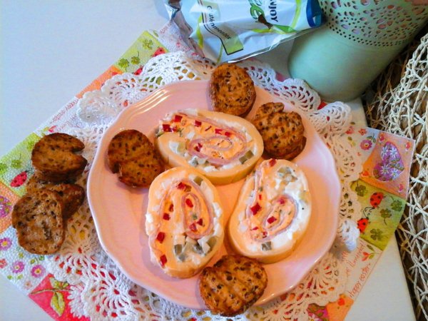 *Tipp: ha nem eszük meg minden sajttekercset, nagyon jól lehet fagyasztani, és később elővenni akár egy vacsora alkalmával. El tudom képzelni még ezt a sajttekercset szeletelt füstölt lazaccal és kaporral, vagy körözöttel is. Nyammi… 🙂