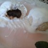 Viszont, aki szereti, mint ahogy mi, cupéron – zsemlemorzsa nélkül – a túrógombócokat az tálalásnál meglocsolhatja eperöntettel vagy cukros tejföllel, vagy mindkettővel, a tejfölre reszelhetünk citromhéjat, vagy lime reszelt héjat.