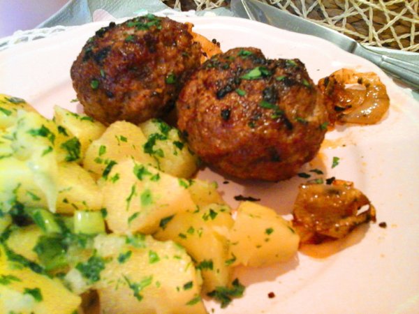 Sült húsgombóc/savanyúsággal/pirított burgonyával és a titkos szósszal