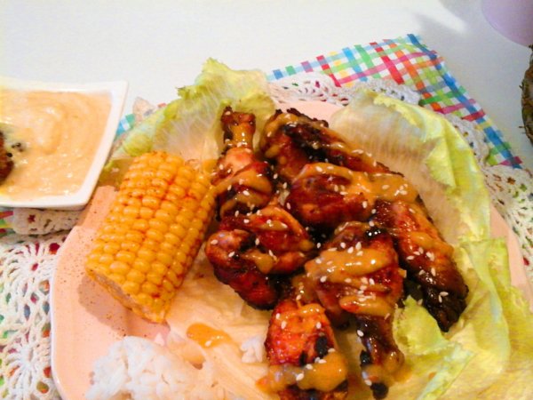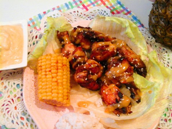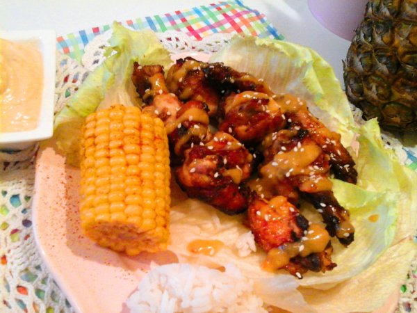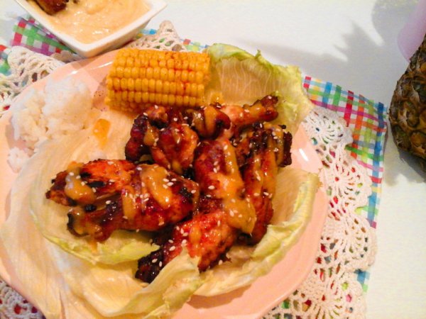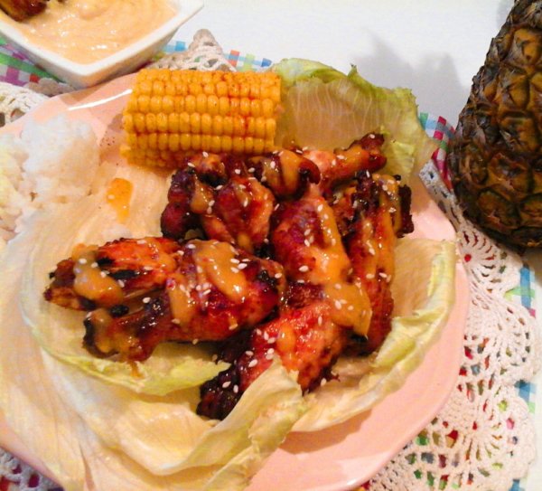 Tálalásnál, locsoljuk meg a Karibi szósszal, szórjuk meg szezámmaggal, és a trópusi mártogatóst kínáljuk hozzá. Nekem volt egy kis maradék főtt jázmin rizsem, és főtt kukoricám, melyet megszórtam cayenne borssal, így azt is tálaltam hozzá. De, csak saláta mellé is isteni finomak, ezek a ropogós csirkeszárnyak, vagy magában eszegetve a szósszal és mártogatóssal is kihagyhatatlan ebéd, vagy vacsora.