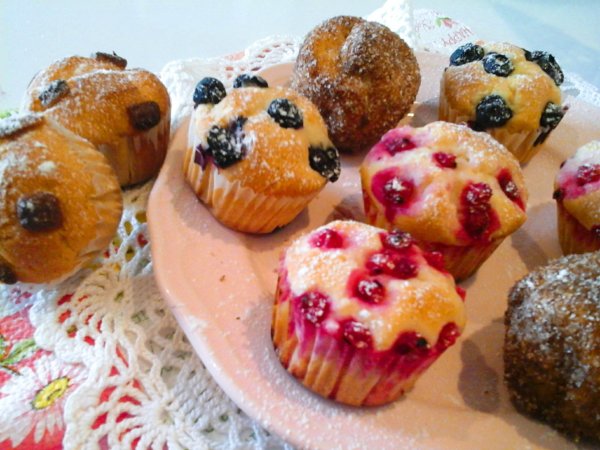 Ribizlis muffin: félig megtöltjük a muffin formákat tésztával, közéje szórunk, ribizlit, majd rá a tésztát háromnegyedig és megszórjuk a tetejét ribizlivel. De úgy is készülhet, hogy háromnegyedig megtöltjük a formákat tésztával, és csak a tetejét szórjuk meg gyümölccsel.