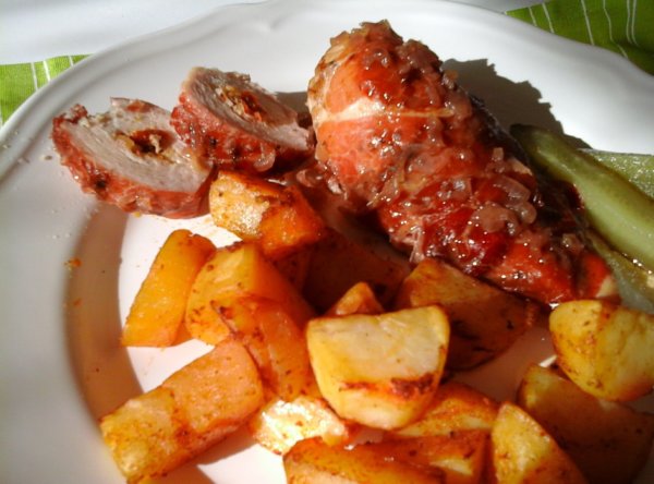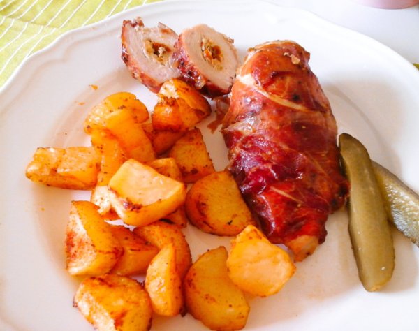 Zsályás túrókrémmel töltött csirkemell/serrano sonkába göngyölve és rongyos sült burgonyával