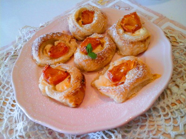 Amit, ma hoztam nektek, egy nagyon egyszerű finomság, a sárgabarackos túrókrémes csiga, melyben a citromos ízes túrókrém, és a zamatos, érett barackok nagyon jó párosítást alkotnak, és hihetetlenül finom desszert lesz belőlük. Érdemes kipróbálni, de akár szilvával is nagyon finom. Kezdő háziasszonyoknak is ajánlom… 🙂