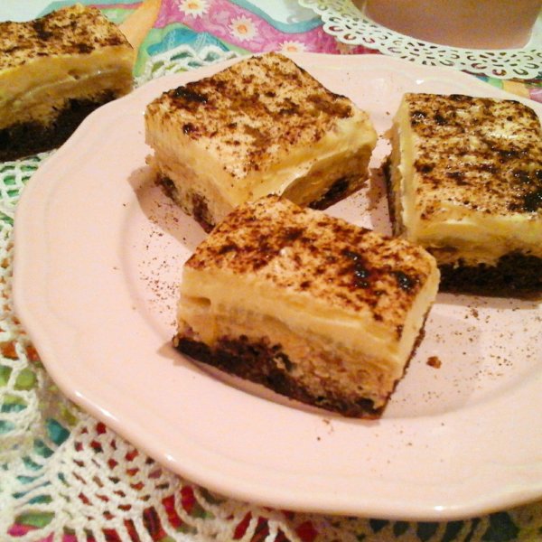 A kihűlt sütemény tetejére kenjük rá, a krémes vanília pudingot, majd szórjuk meg a tetejét kakaóporral. Majd tegyük a hűtőbe, egy 10 percre.