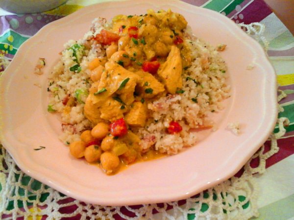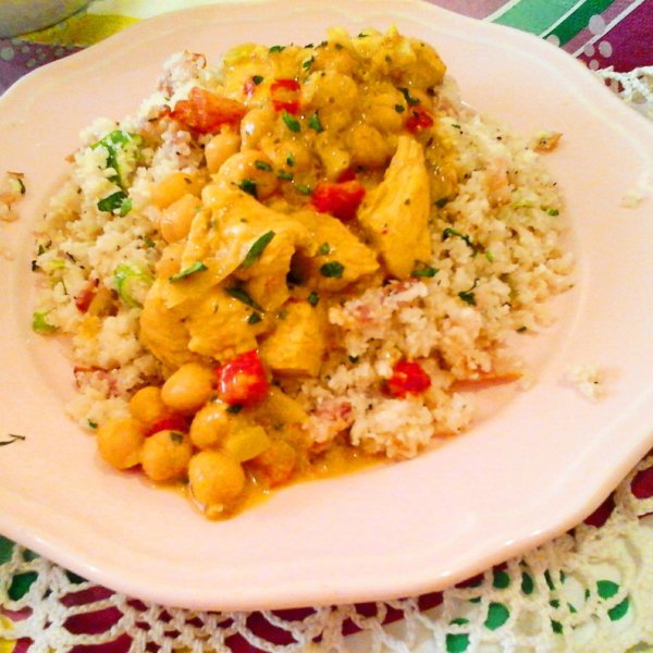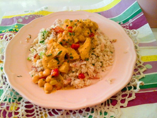 Én karfiolrizzsel (recept itt) tálaltam, a tejszínes csirkés curryt, mely igazán laktató, és mennyeien finom és gyors fogás. Vacsorára, ebédre kiváló választás.