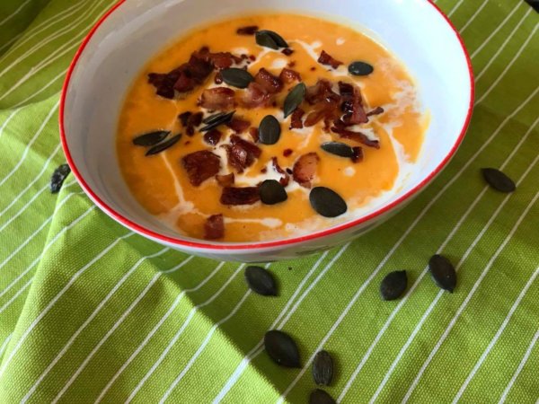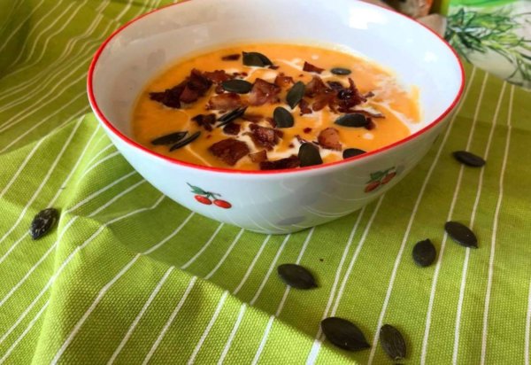 Tejszínes sütőtök krémleves pirított baconnal és tökmaggal recept – gluténmentes