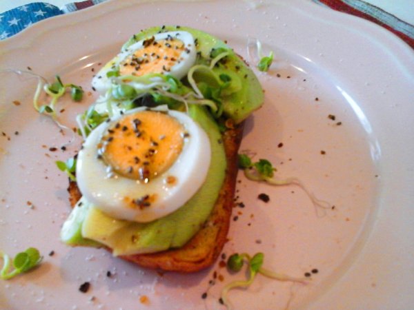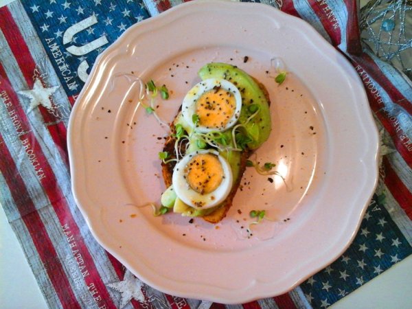 Ha elkészültünk, tegyük az avokádót a kenyérre, sózzuk, borsozzuk, majd a szeletekre vágott főtt tojással koronázzuk meg, itt is sózhatjuk, borsozhatjuk ízlésünknek megfelelően.