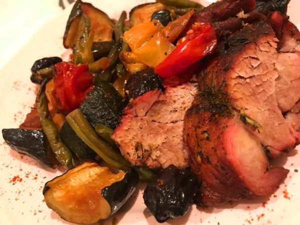 Amikor elkészült hagyjuk pihentetni a húst egy 5-10 percig, majd tálaljuk a mediterrán zöldségköretet a sült steak borsos pulykacombbal.