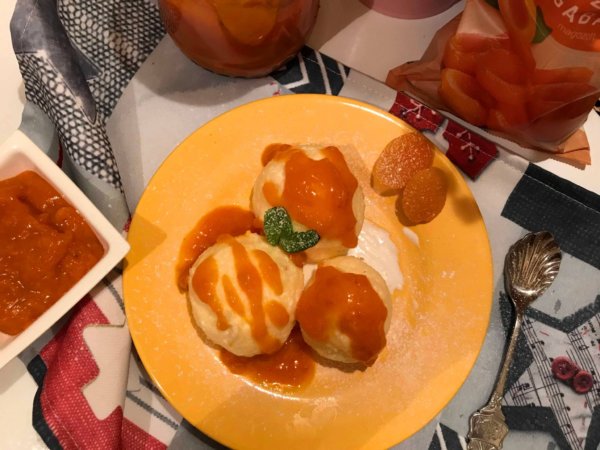 Ezután egy kis házi baracklekvárral öntsük nyakon, mentával díszítjük, mehet rá egy kis leheletnyi porcukor és még forrón falatozhatjuk, ezt az isteni finom téli túrógombócot, a nyár ízeit idézve.