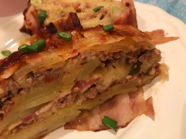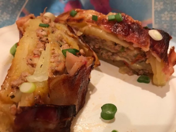 Baconos-húsos krumpli tekercs sok sajttal gluténmentes recept