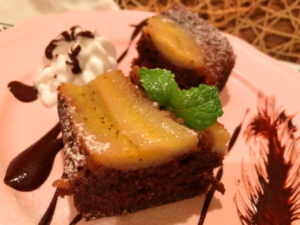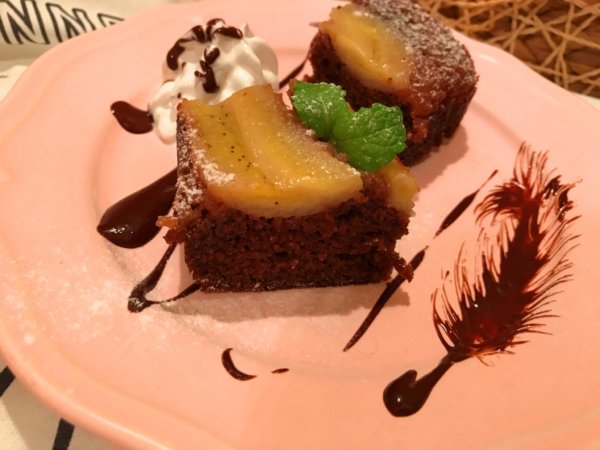 Mandulás-kakaós fordított banán süti Párizsi krémmel és tejszínhabbal gluténmentes recept