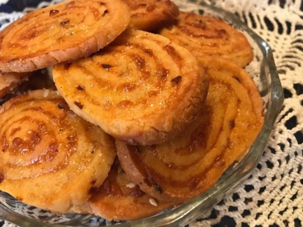 Vékonyra kinyújtjuk, (enyhén lisztezett, Alfa-Mix lisztkeveréket használtam) deszkán egyenként a tésztát, majd mindegyiket megkenjük a sajtos-vajas keverékkel vékonyan, osszuk el háromfelé a tölteléket. És mi a jó szakács titka, felszerelése? a keze, én kézzel gyorsan rákentem, és egy habkártyával eligazgattam a krémet, szép vékonyra. Így jártam el a másik két tésztával is.