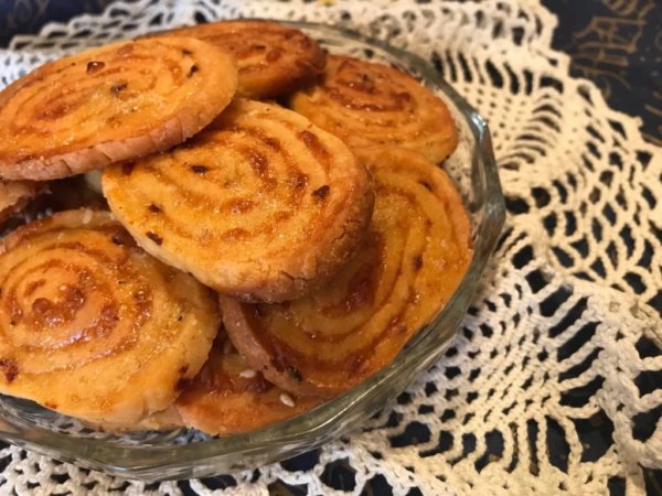 Ha elkészült még melegen szedjük le a sütőpapírról egy tálcára. Ha kihűlt már is falatozhatjuk, ezt az isteni finom gluténmentes sajtos csiga tekercset.
