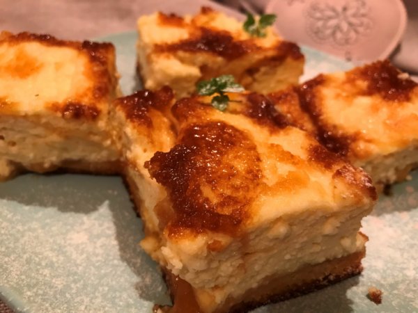 Túrós-karamellás foltoska süti