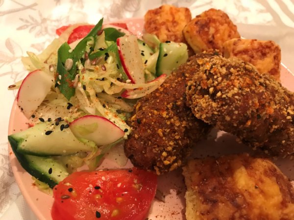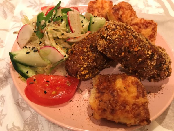 A gyerekek kedvéért, mert ők imádják a ropogós finomságokat, és jobban is megeszik, én most egy kicsit a külsejét sütés előtt megszórtam összedarált nachossal, elképesztő finom lett, érdemes így is kipróbálni. 🙂