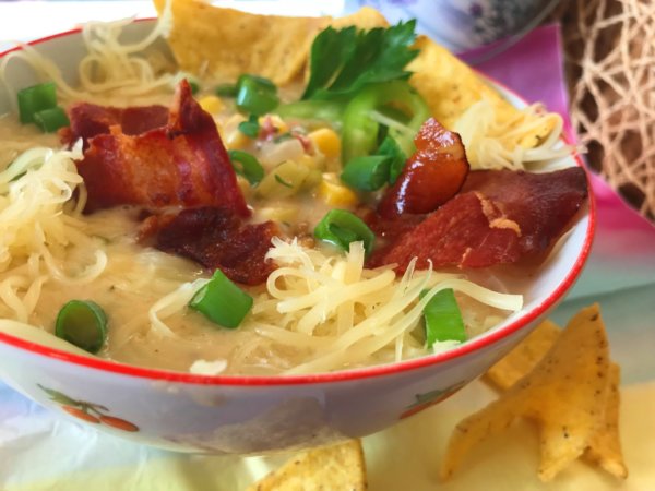Mexikói kukoricaleves pirított erdei sonkával, baconnal, nachossal és sok sajttal gluténmentes recept