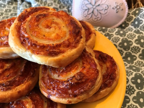 Baconös-sonkás-sajtos csiga leveles tésztából