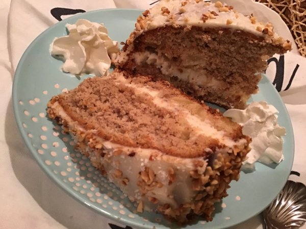 Mandulás-kakaós fordított banán süti Párizsi krémmel és tejszínhabbal