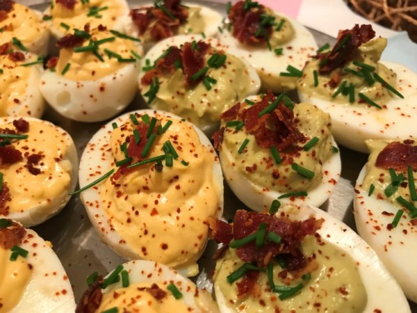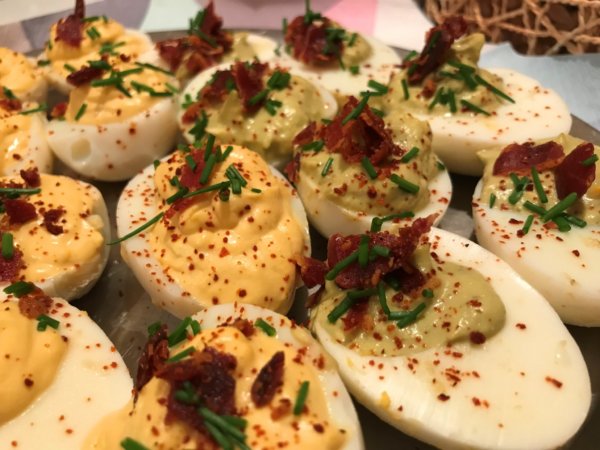 Majd a kétféle masszát, a tojásosat, és az avokádósat tegyük külön-külön egy nyomózsákba, vagy ha nincs egy nejlon zacskóba (itt vágjuk le a csücskét), és töltsük meg a tojásokat.