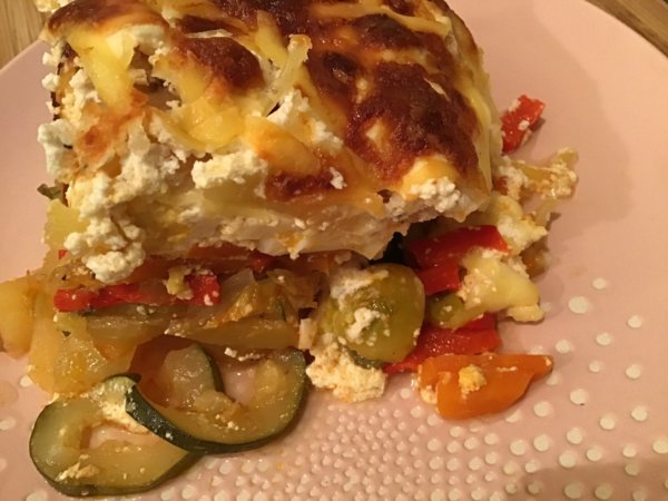 Feta sajtos rakott póréhagymás húsos egytálétel