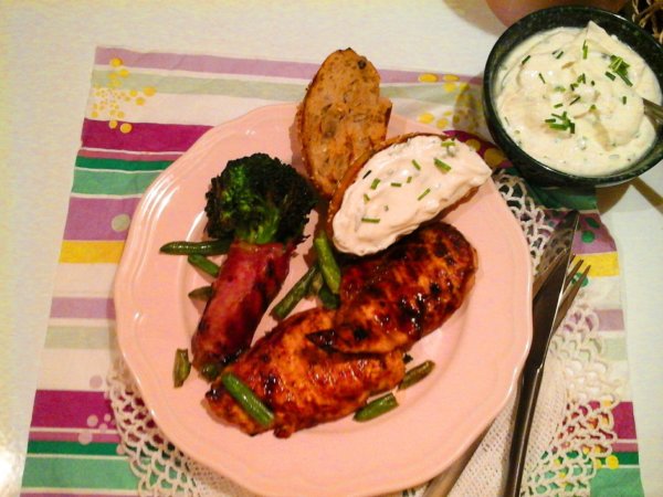 Mézes-mustáros csirkemell/sonkába tekert brokkolival és krémsajtos bagettel